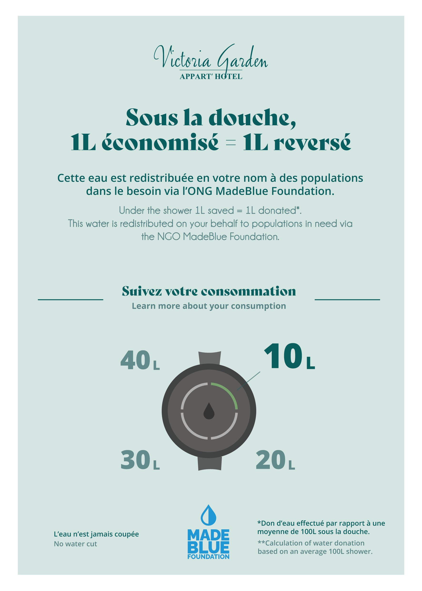 La signalétique est conçue sur mesure par nos équipes. Elle s’adapte à la charte graphique de votre hôtel et à l’identité de votre hôtel, pour s’intégrer naturellement dans la salle de bain tout en incitant vos clients à réduire leur consommation, sans culpabilisation.