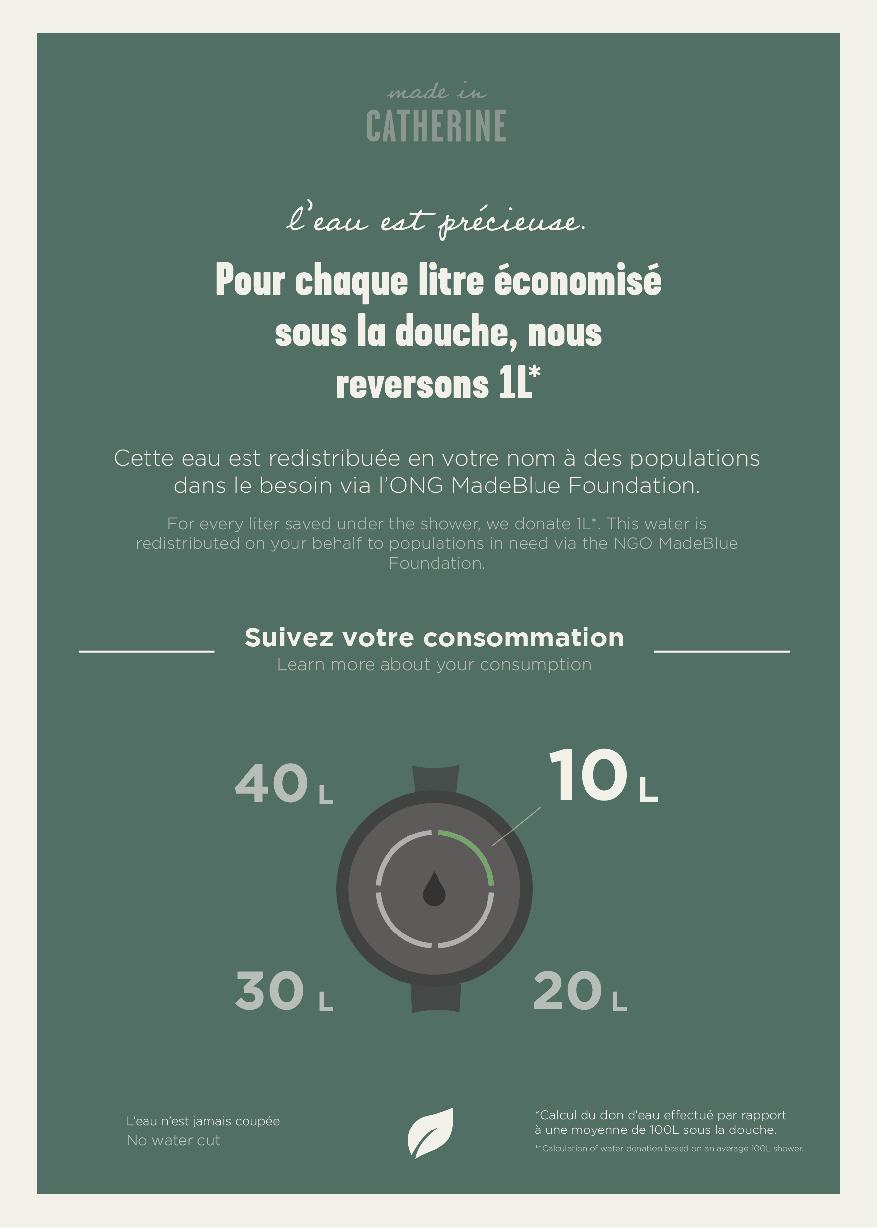 Pendant la douche, l’utilisateur suit son objectif grâce aux indications lumineuses du module et maîtrise ainsi son utilisation d’eau.